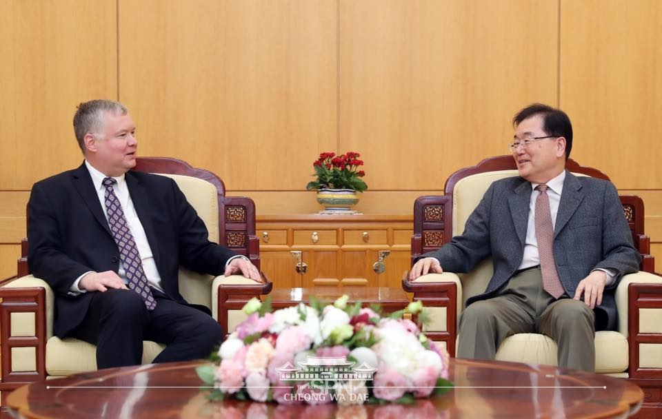 정의용 청와대 국가안보실장, 북한의 icbm은 이동발사대에서 못하므로 동창리기지 파괴하면 괜찮다 사실은 이동발사대에서 발사가 가능. 백악관은 트럼프 대통령이 정의용 청와대 국가안보실장과. 한미일 고위급 안보 협의를 하기 위해 방미했던 정의용 청와대 국가안보실장이 10일 오후 인천국제공항을 통해 귀국하고 있다. 정 실장은 이날 윤도한 청와대 국민소통수석을 통해 이 같은 입장을. 한국과 미국, 북한 정상들 간의 협의 내용을.